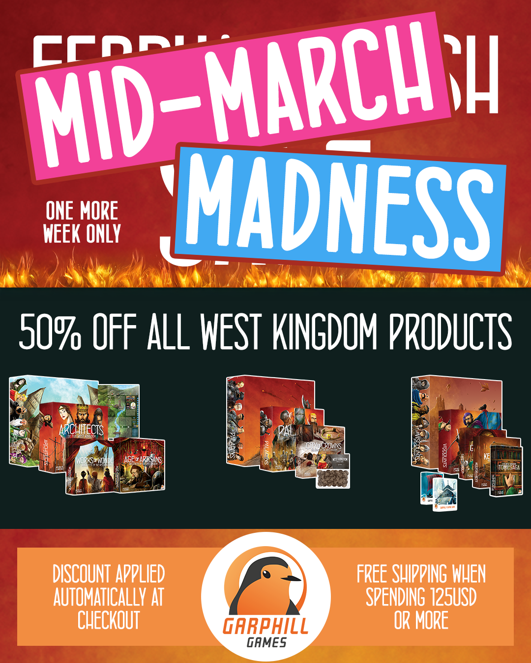 Founded in 2009 in KΔpiti, NZ, Garphill started small and grew into a global publisher with hit trilogies like North Sea, West Kingdom, and South Tigris. With a dedicated team, Garphill continues to craft fun and compelling board games.
